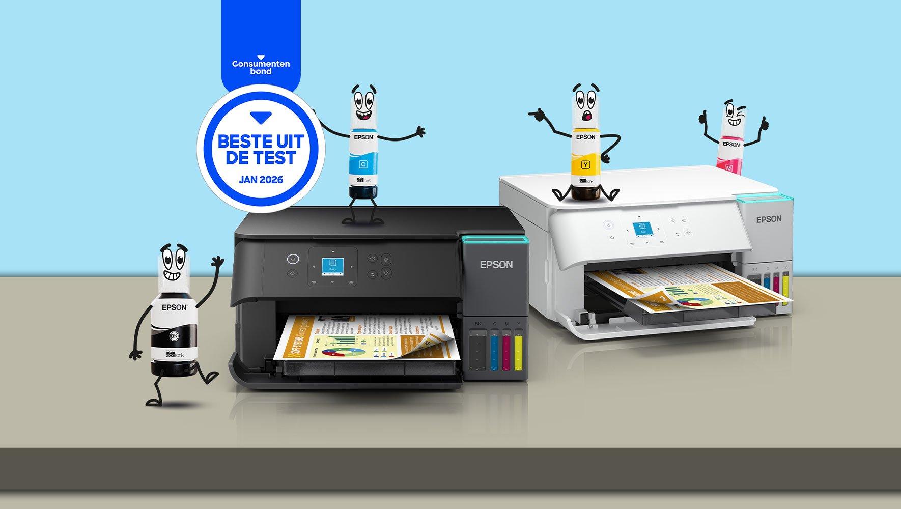 Op basis van berekeningen van Epson verbruiken Epson EcoTank-printers voor thuisgebruik en thuiskantoren minder energie vergeleken met het gemiddelde energieverbruik van de vijf bestverkochte multifunctionele A4-kleurenlaserprinters van 1-20 ppm in Europa (IDC, Quarterly Hardcopy Peripherals Tracker, verzendingen uit 2022, gepubliceerd Q2 2023). Waarden voor stroomverbruik zoals gepubliceerd in de officiële specificaties van de fabrikant.